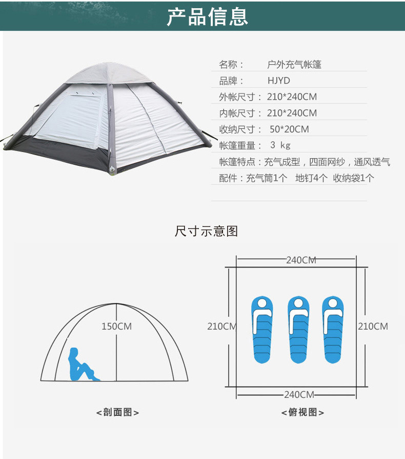 戶外(wài)充氣帳篷 的(de)圖片和詳(xiáng)細說明