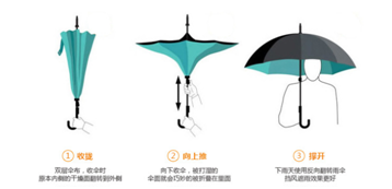 反向傘(sǎn)無疑是近幾(jǐ)年(nián)比較火爆的日用(yòng)禮品了!創意點亮(liàng)世界,科技改(gǎi)變生活(huó),這把傘改變你3000年的用傘習慣。深圳市歐(ōu)凱傘業專業提(tí)供反向傘定製,歡迎谘詢。 下雨天特別麻煩,無疑(yí)有三個原因:1.濕噠噠的雨傘在擁擠(jǐ)的地(dì)鐵公交上難免沾濕別人(rén)的衣物(wù),非(fēi)常尷(gān)尬; 2.大風天(tiān)氣風一刮,傘基本可以say byebye了;3.上下車時傘還沒開收好(hǎo),人和車都已經(jīng)濕噠噠了(le),暴(bào)雨的話直接能擰出水(shuǐ)來了。