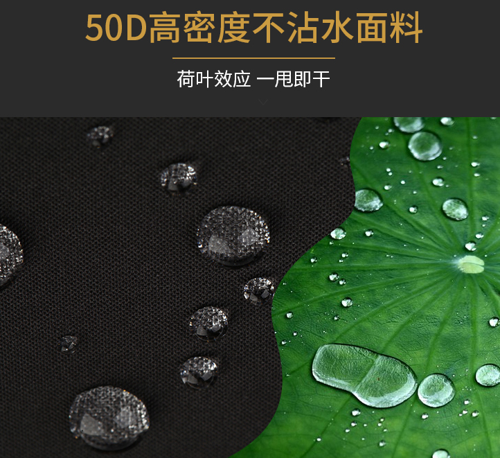 就(jiù)跟荷葉一個道理,水珠一直在表(biǎo)麵打轉卻不會浸濕葉子,輕輕一甩水珠(zhū)就飛走了,荷葉還是一如既往的幹淨。 什麽是超拒水(shuǐ)? 拒水即疏水,判定疏水能力得看雨滴與(yǔ)物(wù)體表麵的接觸角大小,接觸角越大,水珠拒水性(xìng)越強,也就越不容易與物體表麵融合,當接觸角>150°即為超疏水。 市麵上的普通雨傘,接觸角大(dà)多隻能達到70°,而這款超疏水不(bú)濕傘,卻達到了驚人的167°。可以看到落在傘麵的水流,很快便向四周飛走(zǒu),根本沒有留下任何浸(jìn)濕的痕跡。