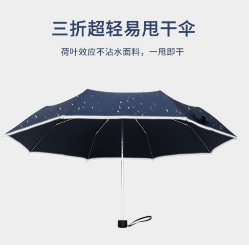 目前市麵新推(tuī)出的這(zhè)款三折超輕易甩(shuǎi)幹傘,采用荷葉效應不沾水麵料50D超潑(pō)水碰擊布過透明UV50,淋雨後直接甩一甩,傘立刻(kè)變幹,晴雨兩用真是太方便了;磨砂材質的防滑耐磨(mó)手(shǒu)柄,握感(gǎn)極度舒適;鋁+玻璃纖維骨架(jià),輕巧柔韌抗風能力(lì)更好。