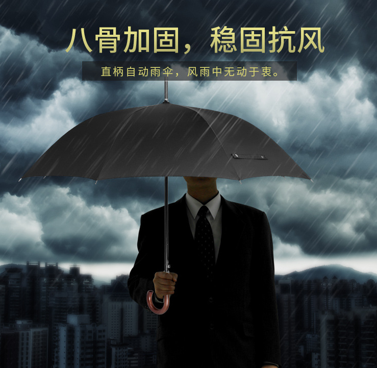 這款八骨加固,超強抗風直杆傘,經典(diǎn)素色(sè)風格結合實木手柄,彰顯雅士風度,