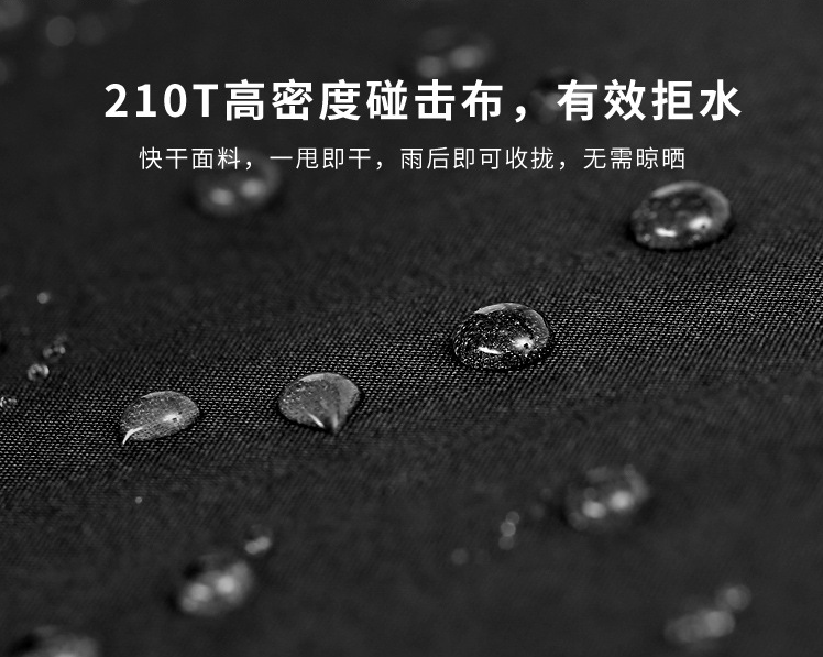 采(cǎi)用防潑(pō)水速(sù)幹傘(sǎn)布,細纖維麵料高密度編織而成,經過防潑水塗層(céng)處理,
