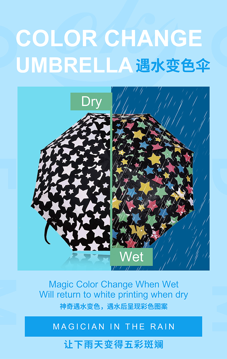遇水變色傘是麻花星空无限mv傘業的專(zhuān)利產品(pǐn),一直以來都受到國內外客人的青睞和選擇。