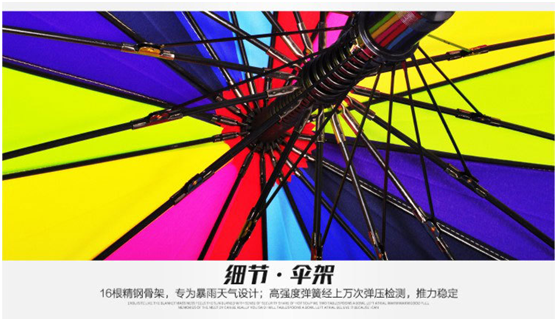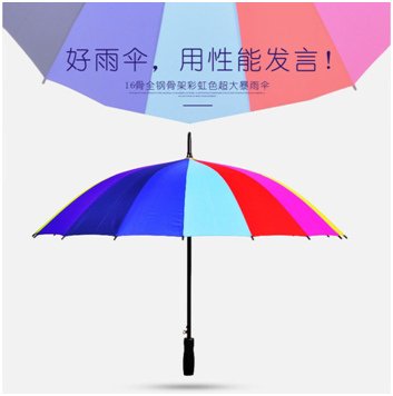 彩(cǎi)虹傘,16種(zhǒng)顏色采用碰織布,可根據要(yào)求設計印刷