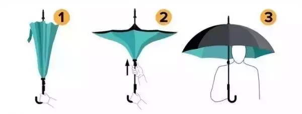 外觀跟傳統雨傘無大差別, 打開與合攏的方向, 則與傳統雨傘完全相反(fǎn)。 打開的原理就像花(huā)兒盛開一樣。