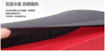 雙層傘布,防曬隔(gé)熱效果更好,傘骨架在(zài)雙層傘布中間,棒棒噠!