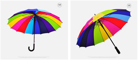 現在有款傘,名叫“彩虹傘”。它不(bú)是真的彩虹(hóng)卻能讓人覺得真的摸到彩虹,它的製作原理是(shì)把彩(cǎi)虹的顏色印在(zài)傘麵上,這樣每天都能看(kàn)得到彩虹。撐著它抬頭看(kàn)看,能消除你煩悶的心情,也能讓你在人群中有(yǒu)不一樣(yàng)的存在,回頭率增加!