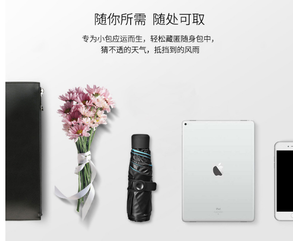 相信咱們女生都(dōu)會有好多個包包,單(dān)肩(jiān)的雙肩的大的小的都有,方便在出門的時候(hòu)搭配不同(tóng)款式的衣服。手機、紙巾、化妝(zhuāng)品、雨傘等等這些基本是女生出門必備的物品(pǐn),傘是防曬遮雨必用的,背包大了就沒所謂都可以裝得下。可是想背個小包出門,這些東西就裝不下了(le)。傘太大又有點重(chóng),再加上各種物品,每天出門前都(dōu)是一番掙紮,別提有(yǒu)多心累,這些應該(gāi)是大多數女生都有過的煩惱吧?