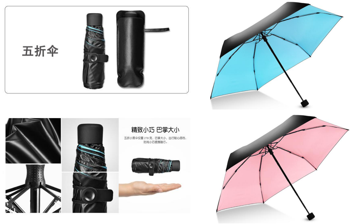 相信一些細心的朋友(yǒu)在使(shǐ)用雨傘的時候會發現,有些雨傘的(de)傘麵是由不同數量的三角片組成的,有(yǒu)6片的、8片(piàn)的、10片等等(děng)的。 常規咱(zán)們的五折傘都是由6骨組成的,而三(sān)折(shé)的多(duō)位8骨的,那麽這個骨數的大小有什麽意義呢?