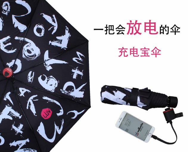 伴隨著科技越來越發達(dá),我們生活也越來越便(biàn)捷,機器很大程度上取(qǔ)代了手工,一切的東西從(cóng)繁瑣變的(de)簡單、小巧、多用(yòng)。接下來為大家展示一款個性雨傘,它就是智能化、多用化(huà)充電寶雨傘。