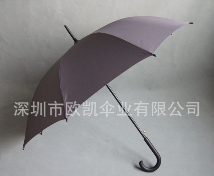 廠家直(zhí)銷 男士直杆(gǎn)傘 鐵中棒彎(wān)柄傘 純色